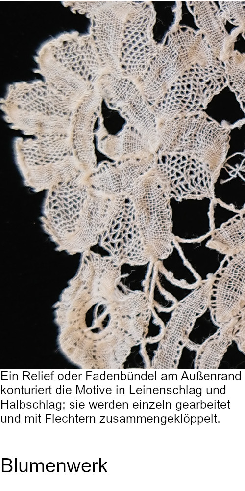 Bei den Klöppelspitzen mit geschnittenen Fäden unterscheidet man: