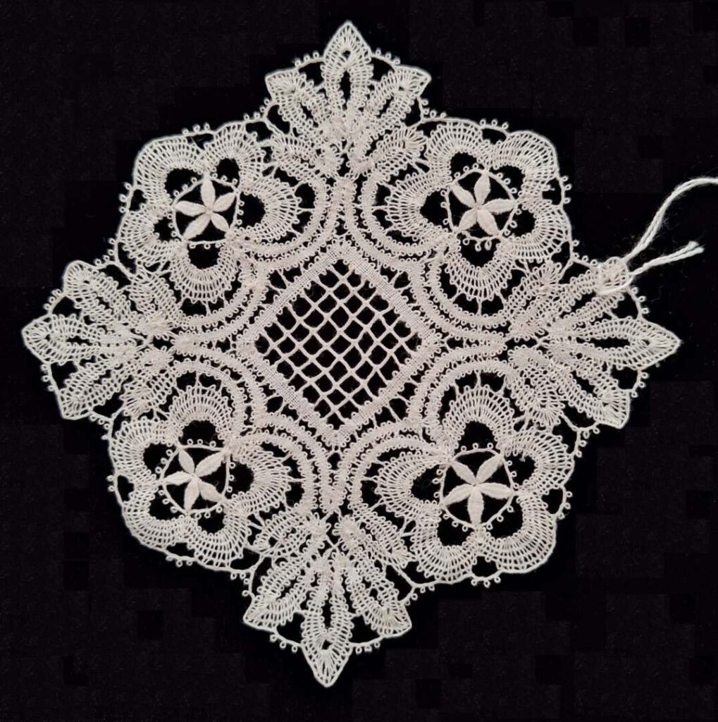 Die Spitze wurde 1916/17 in Schneeberg/Erzgebirge entwickelt, um den Herstellungsprozess von Spitze zu beschleunigen und so den Herausforderungen der Maschinenspitze gewachsen zu sein.