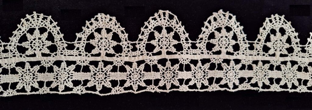 Geklöppelte Reticella, Entwurf: Brigitte Bellon, Ausführung: Eva von der Bey