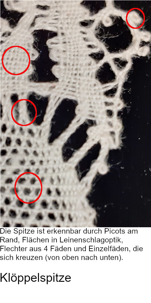 Beim Erkennen von Spitzen unterscheiden wir zunächst die verschiedenen Herstellungstechniken: Betrachten Sie daher Ihre Spitze bei sehr gutem Licht und nach Möglichkeit in Vergrößerung (Vergrößerungsglas, vergrößertes Foto auf dem Handy o.ä.).